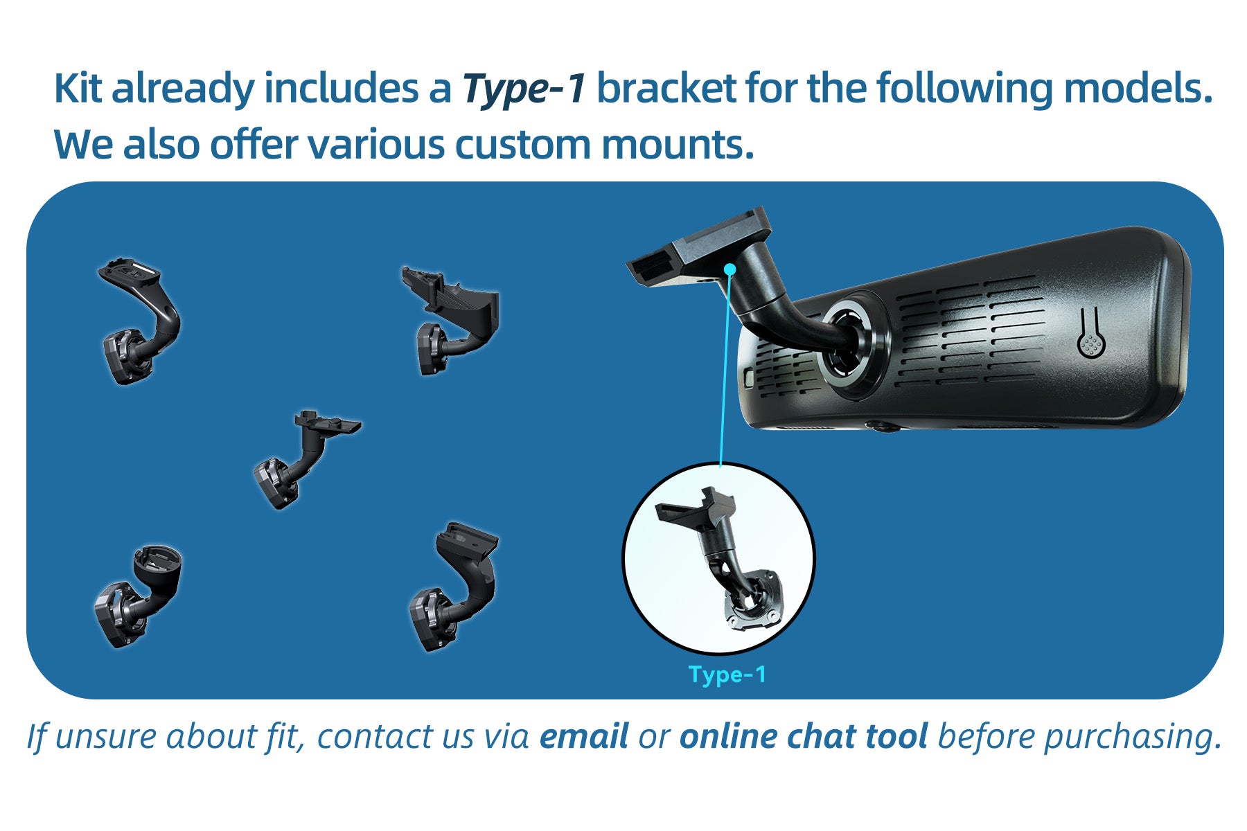 Sinjet has designed dedicated streaming rearview mirror bracket for the Every car models. The bracket was developed through scanning the original vehicle, followed by precise modeling and design. It has been tested on multiple every car models to ensure perfect compatibility.