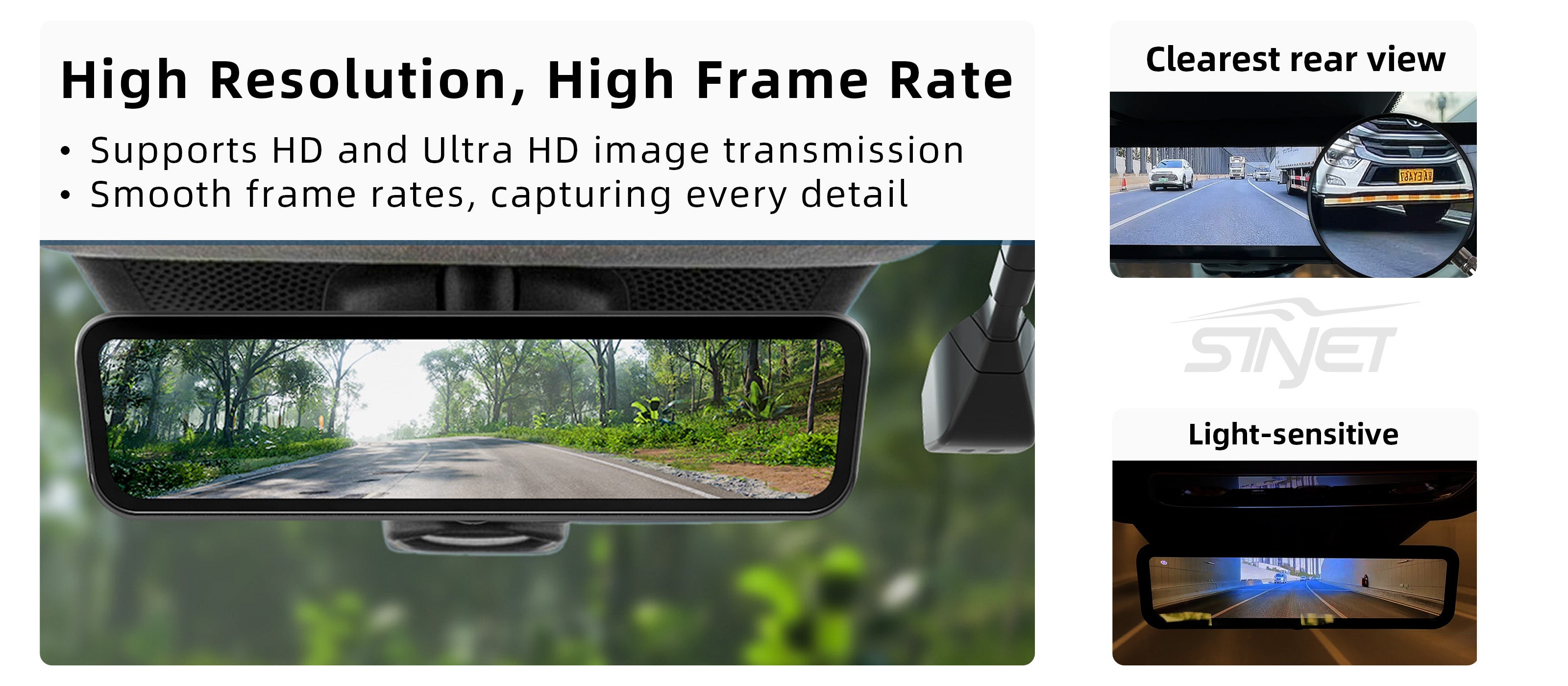 Sinjet H10 9.2'' 60FPS 2 channel mirror dash cam